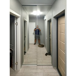 Если отдельной комнаты для гардеробной нет - на помощь приходит зонирование дверьми-купе. В этом разделе Вы найдете много вариантов таких гардеробных. Напоминаю, что при отсутствии закладной под натяжным потолком её можно сделать, стоит не так дорого, зато получится полноценная встроенная мебель.