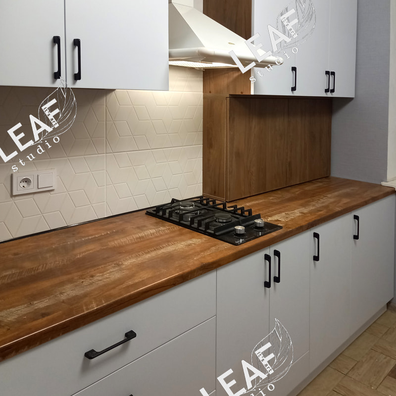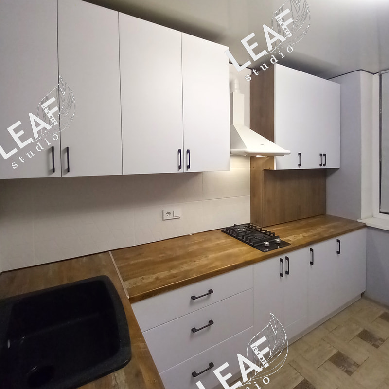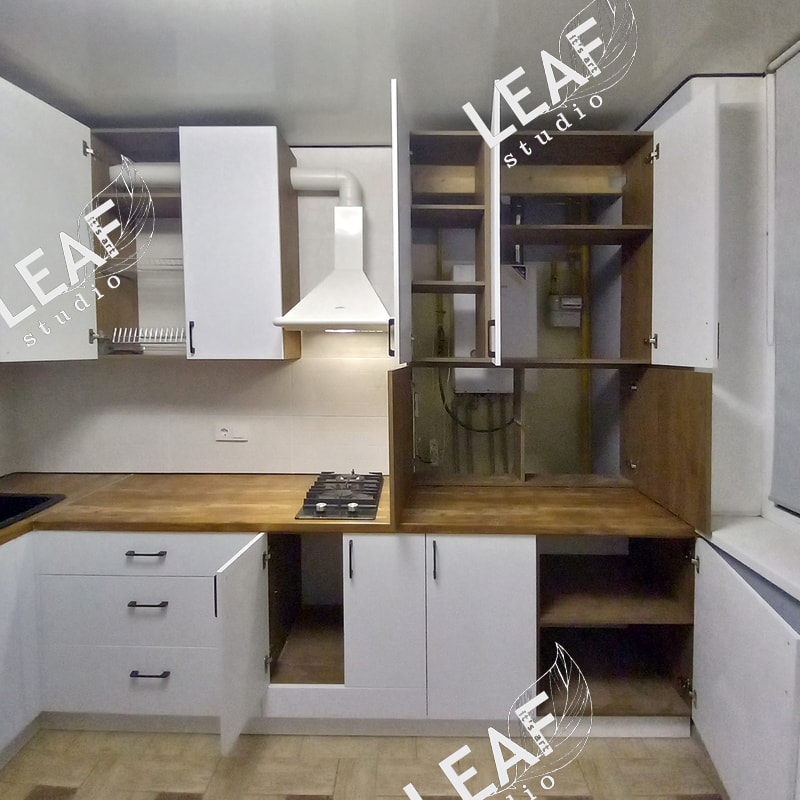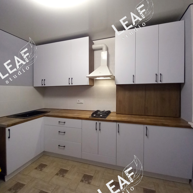 Размер 3100х1500мм, верхние шкафы 1000мм, МДФ пленка.