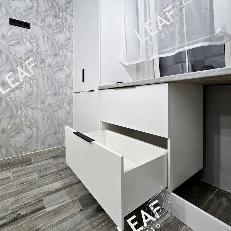 Столешница 910 мм глубиной, фрезеровка для установки вместо подоконника.