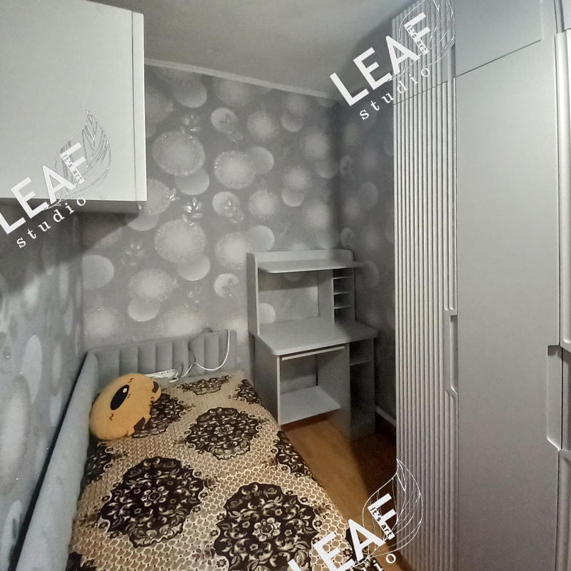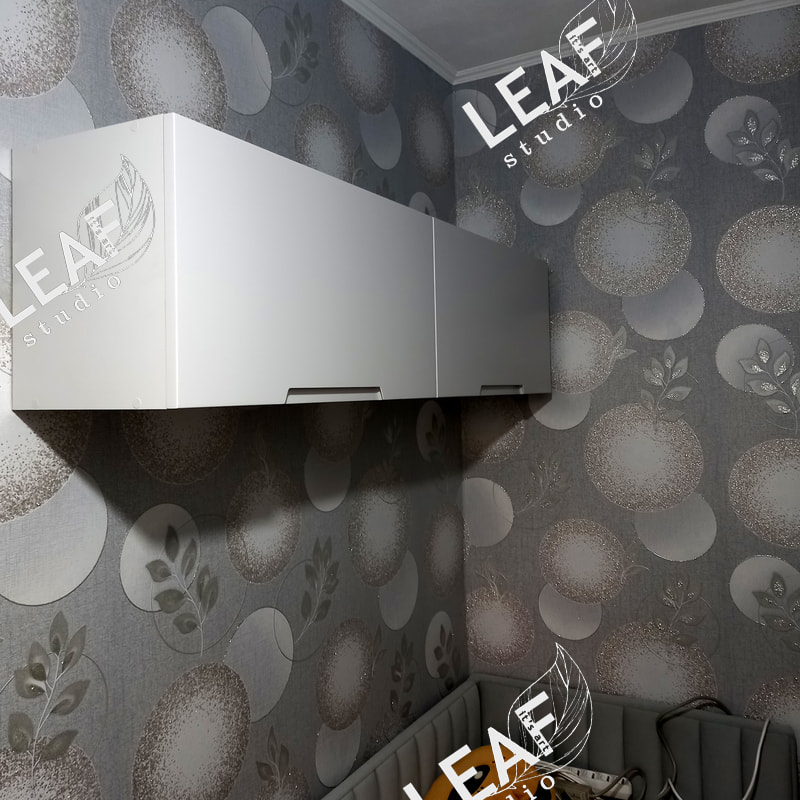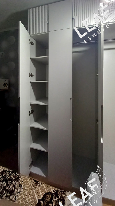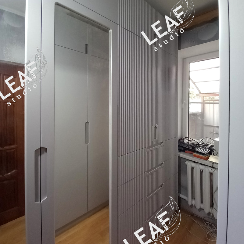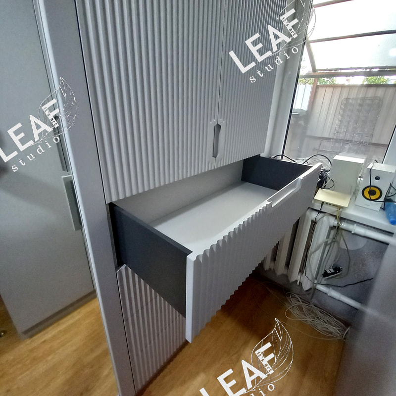 Шикарный набор мебели. Фасады - прекрасная итальянская эмаль с интегрированной ручкой и сочетанием разных фрезеровок. Хорошие петли, дорогие металлические системы выдвижения. В комплект входят: 4,5 метра шкафов, подвесные шкафчики и стол.