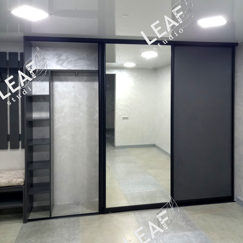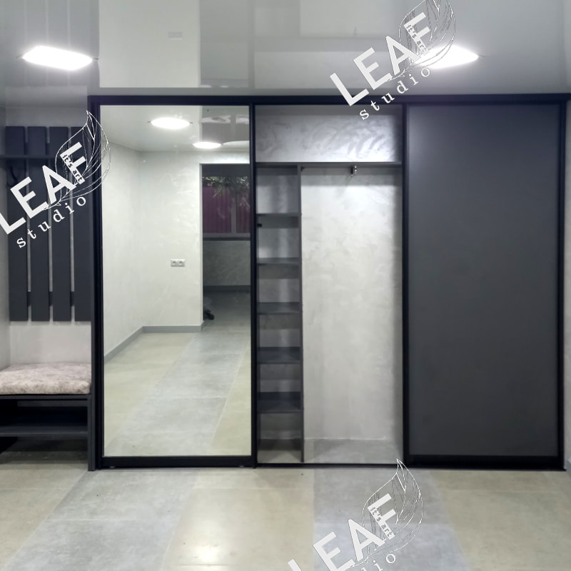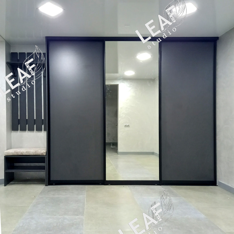 Шкаф-купе с пуфом и вешалкой. Усиленный профиль, усиленные мягкие ролики, качественное ровное зеркало в толстой противоосколочной пленке.