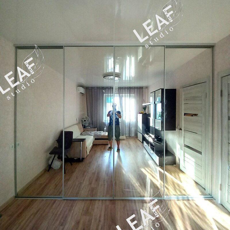 3450х2700мм, тонкий усиленный профиль, бесшумные ролики, шикарное зеркало.
