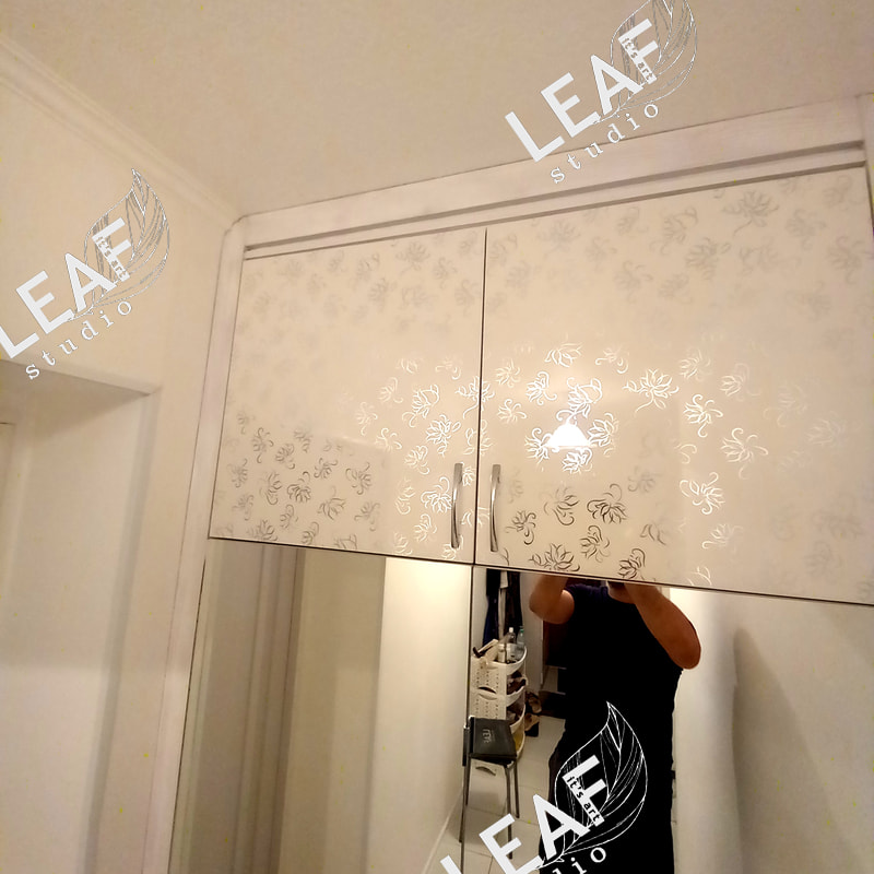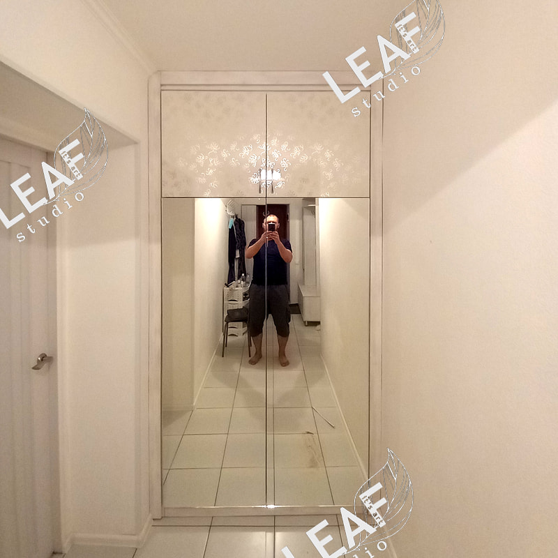 Встроенный распашной шкаф. Независимый каркас, декорирование швов, фасады дсп+зеркало и МДФ глянец